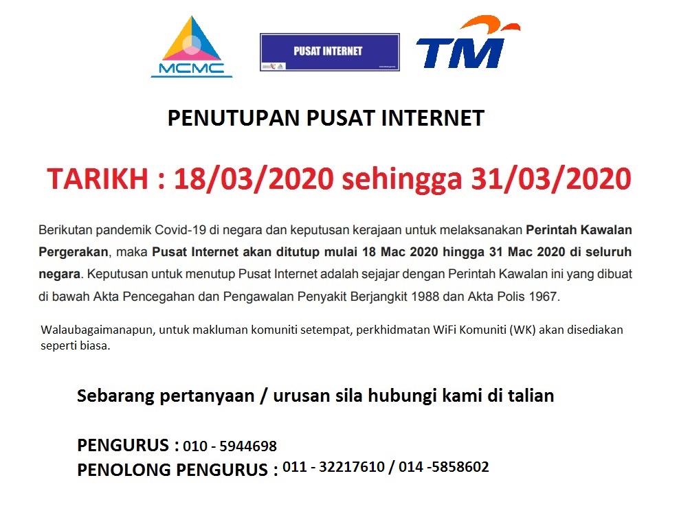 Notis Penutupan Sementara Pusat Internet Tebedu