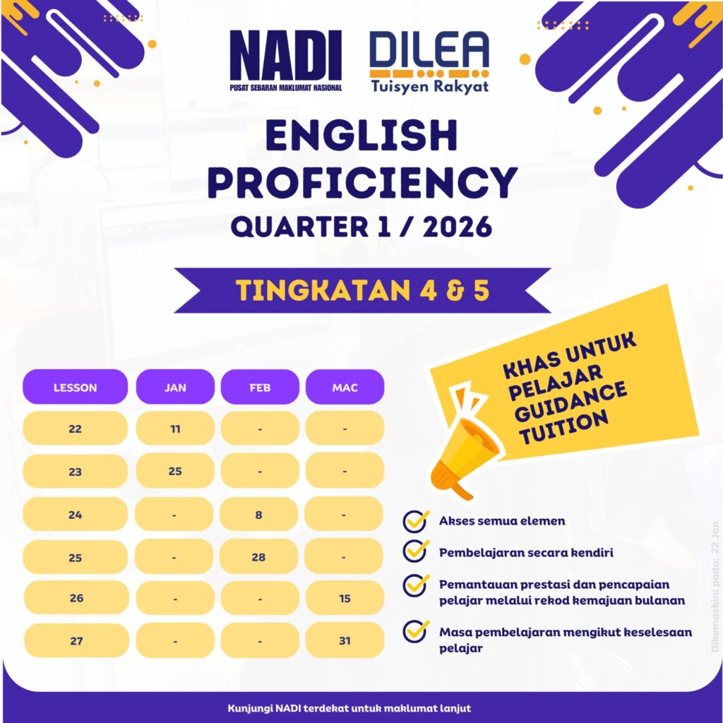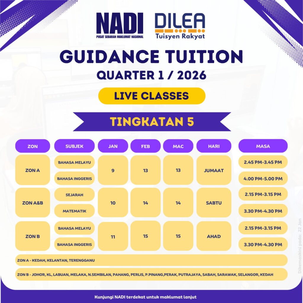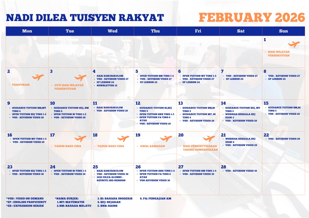 JADUAL NADI X DILEA KELAS OPEN TUITION RAKYAT BULAN FEBRUARI 2026