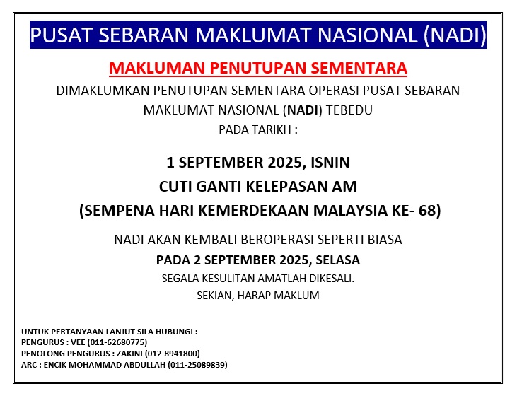 MAKLUMAN PENUTUPAN SEMENTARA NADI BULAN OGOS 2025