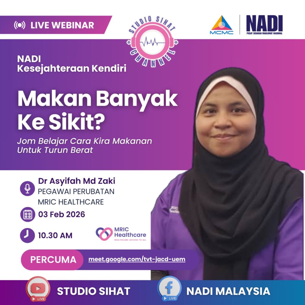 Tajuk : Webinar “Makan Banyak Ke Sikit? Jom belajar cara kira makanan, Tarikh : 3 Februari 2026 (Selasa), Masa : 10.30 pagi, Tempat : Rumah Komuniti, Kehadiran : 1 orang (Surirumah)