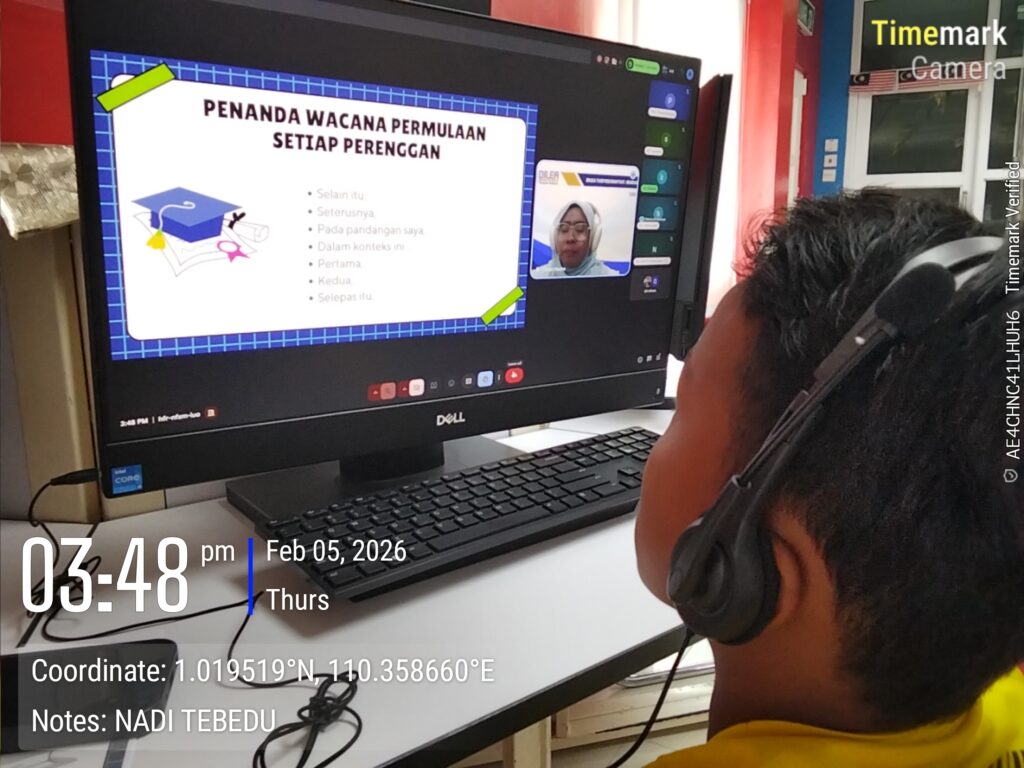 Tarikh : 5 Februari 2026 (Khamis), Subjek : Bahasa Melayu Tingkatan 1, Masa: 3.30 petang – 4.30 petang, Tempat : NADI Tebedu, Kehadiran : 1 orang