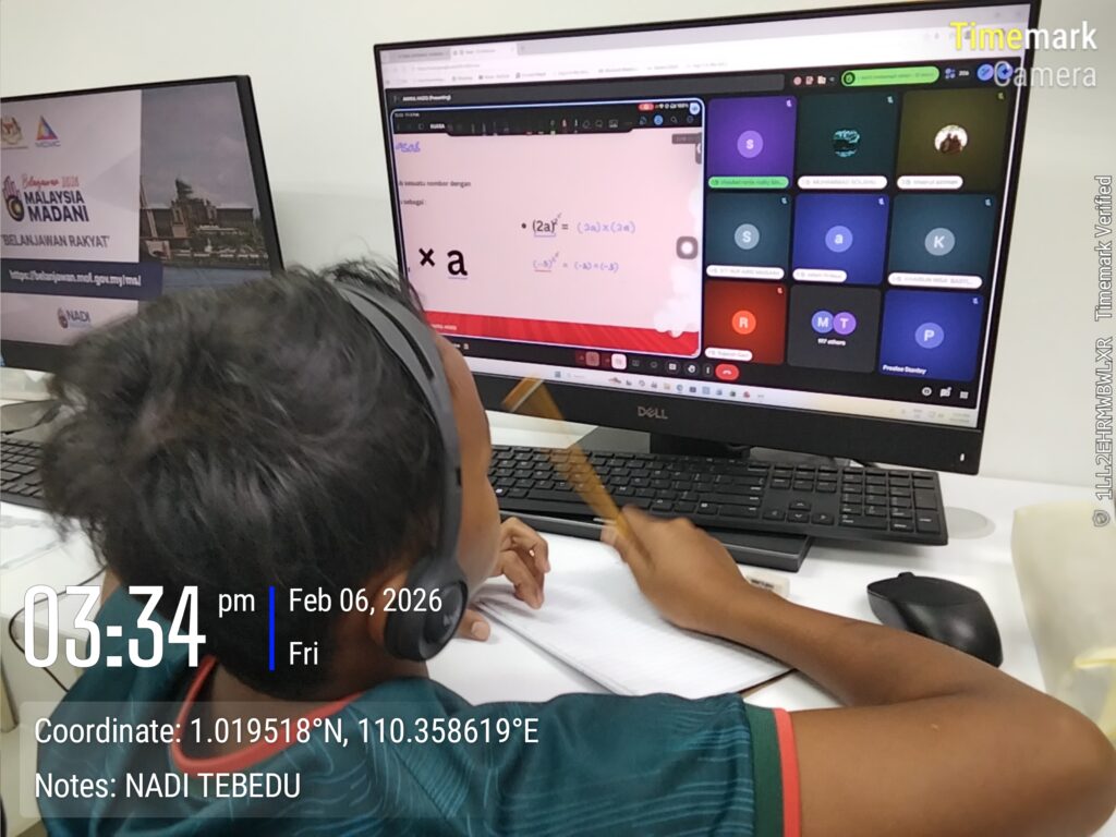 Tarikh : 6 Februari 2026 (Jumaat), Subjek : Matematik Tingkatan 1 & 3, Masa: 3.30 petang – 4.30 petang, Tempat : NADI Tebedu, Kehadiran : 5 orang