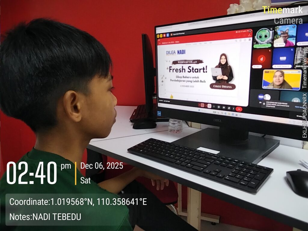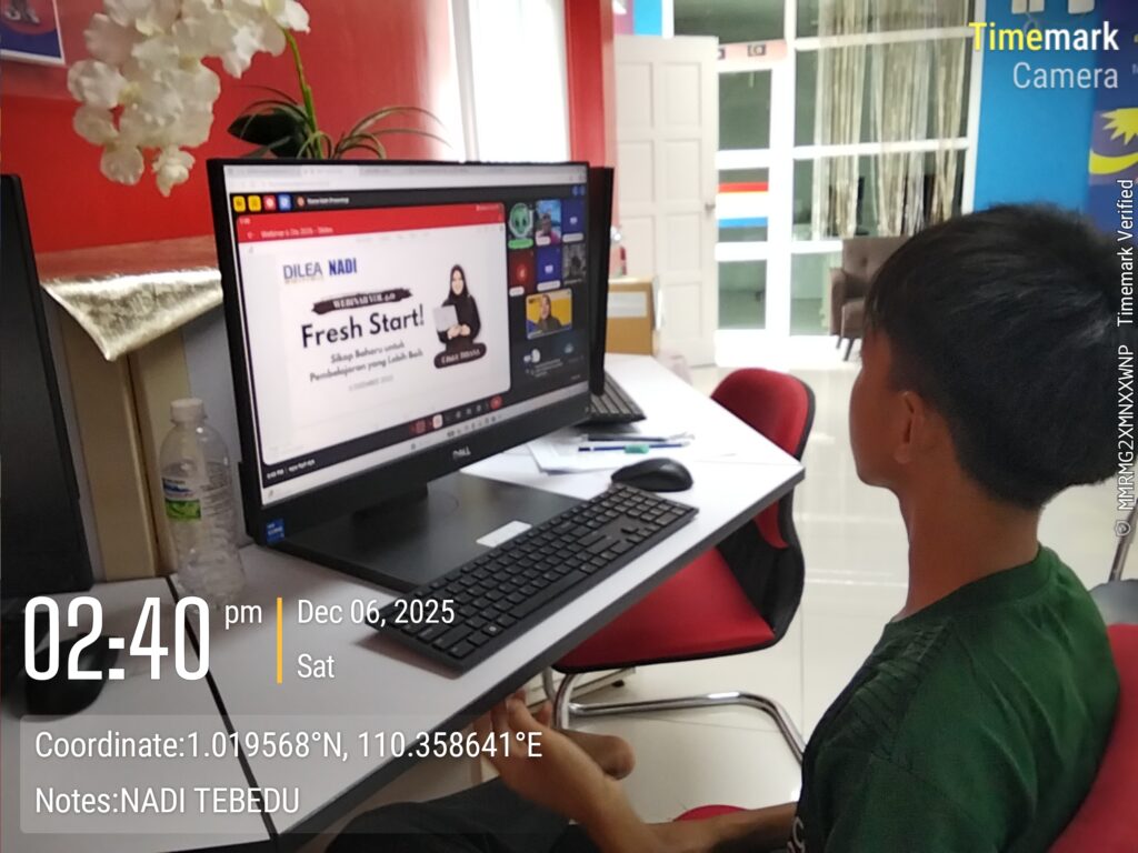 Nama Program : Webinar Motivasi Pelajar – Fresh Start, Tarikh : 06.12.2025 (Sabtu) Masa : 2.30 petang, Tempat : Lobi Penggunan, Kehadiran : 1 orang (Tingkatan 1 Sekolah Menengah Kebangsaan Tebedu)