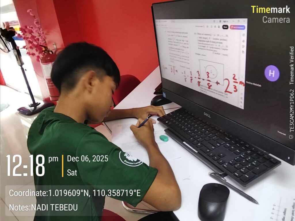 Nama Program : Kelas Tuisyen Video On Demand – Matematik Tingkatan 1 Tarikh : 06.12.2025 (Sabtu) Masa : 11.00 pagi, Tempat : Lobi Penggunan, Kehadiran : 1 orang (Tingkatan 1 Sekolah Menengah Kebangsaan Tebedu)
