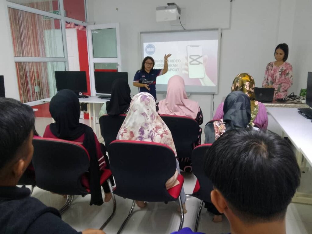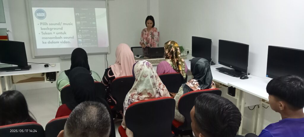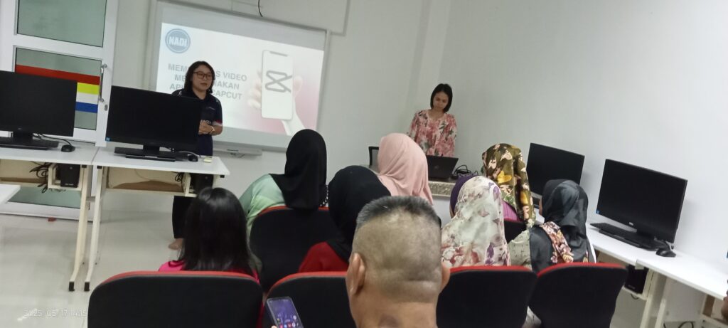 Program: Belajar Penyuntingan Video (Capcut), Tarikh : 17 Mei 2025, Sabtu, Masa : 2.00 petang, Tempat : Bilik Latihan & Ruangan Pengguna Kehadiran : 10 orang (8 orang Ahli Komuniti MADANI & 2 orang Pegawai Japen)