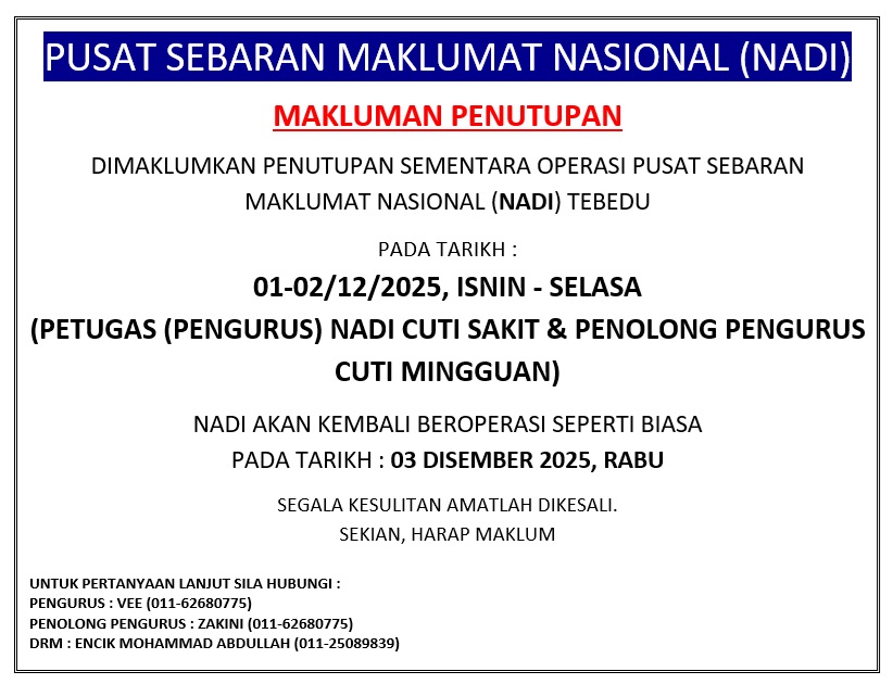 NOTIS PENUTUPAN SEMENTARA NADI(1-2 DISEMBER 2025, ISNIN-SELASA)